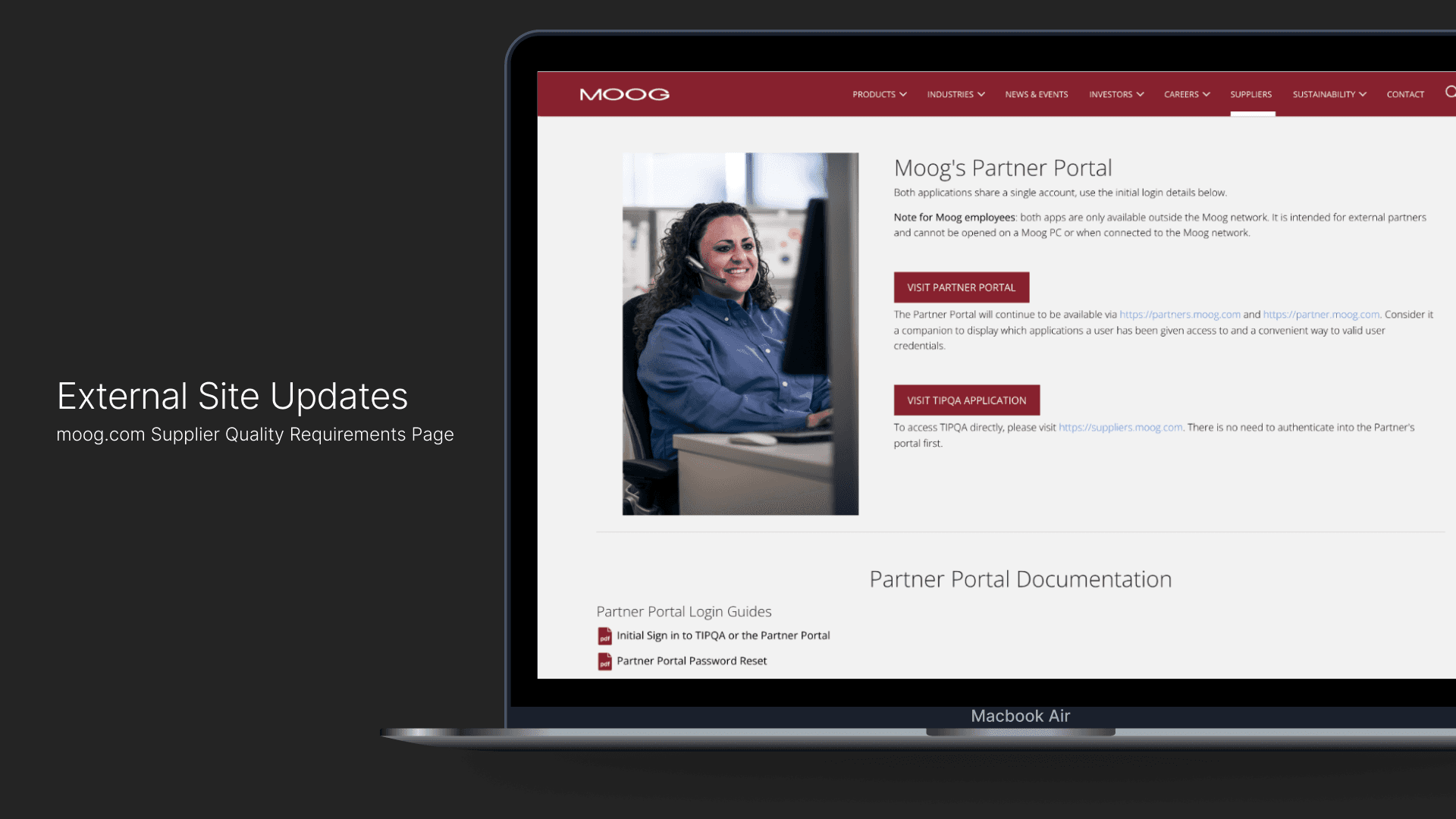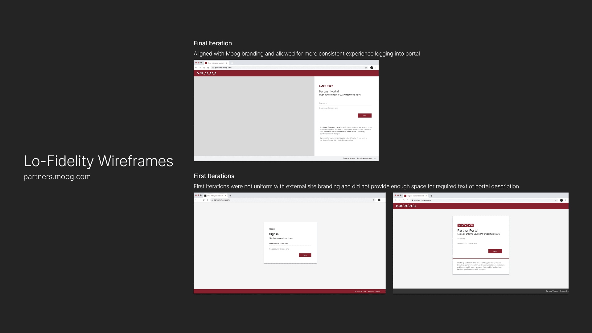 To reduce confusion around account access, I redesigned the Partner Portal entry point on moog.com to provide clearer guidance and onboarding for external users.