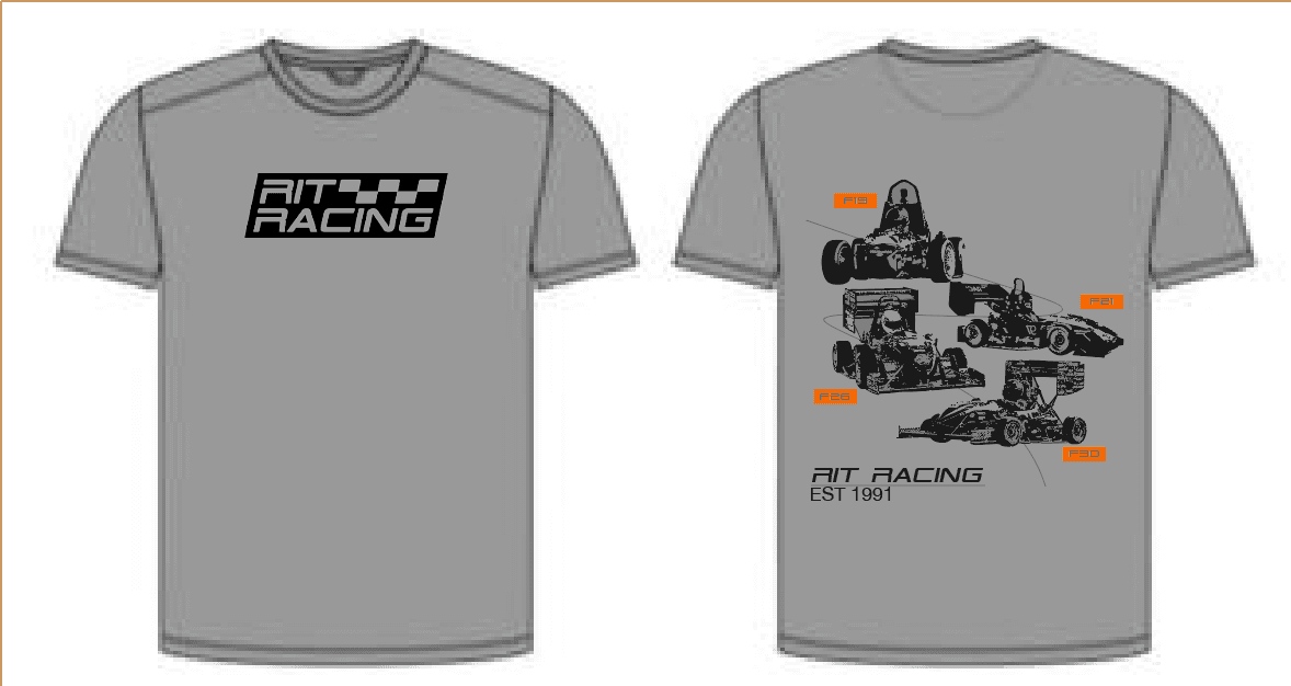 The front of our F32 sponsor t-shirt has a grid on it to make it look like a CAD drawing and provide subtle texture behind the car outline.