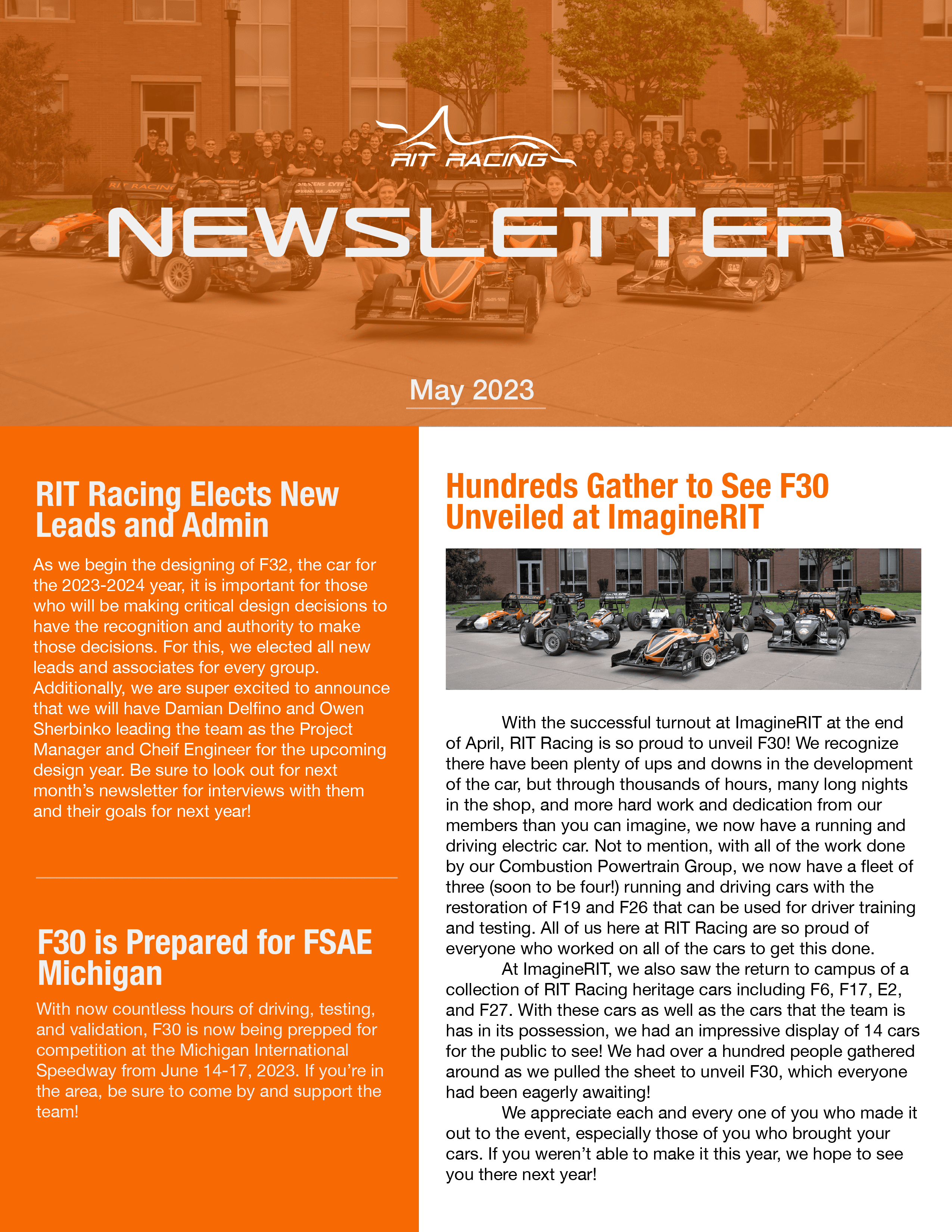 Posts shown were posted on RIT Racing's Instagram and Facebook to engage fans and sponsors on RIT Racing's accomplishments and captivating innovation. Posts shown received hundreds of likes and helped drive new followers and sponsors to our team.