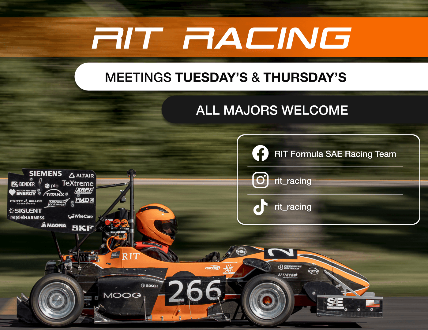 The initiative significantly elevated RIT Racing’s brand presence and professionalism, strengthening engagement across digital channels and improving the team’s positioning for sponsorship opportunities. Through this leadership role, developed advanced graphic design and branding skills while gaining exposure to engineering-driven design constraints and real-world application beyond traditional digital interfaces. The experience reinforced the value of design systems, collaboration, and mentorship in delivering cohesive, high-impact branding solutions.